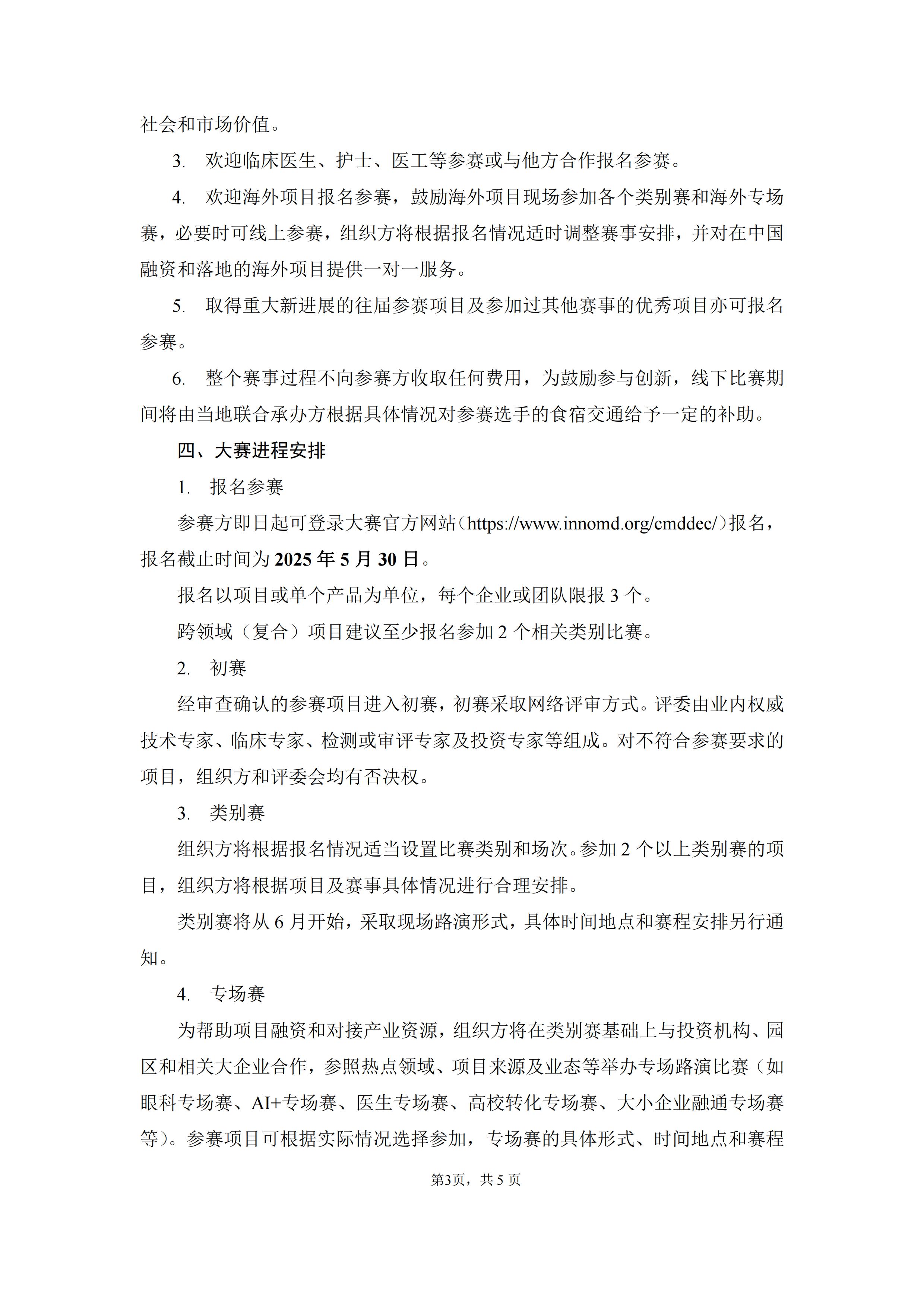 参赛方即日起可登录大赛官方网站(医疗器械创新网网://naggp.com/cmddec/)报名,报名截止时间为2025年5月30日。